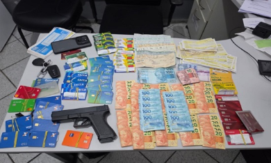 Durante a ação, foram apreendidos 53 cartões magnéticos de benefícios sociais e de instituições bancárias, mais de R$ 2 mil em espécie, um simulacro de arma de fogo, além de cheques e notas promissórias assinadas por vítimas.